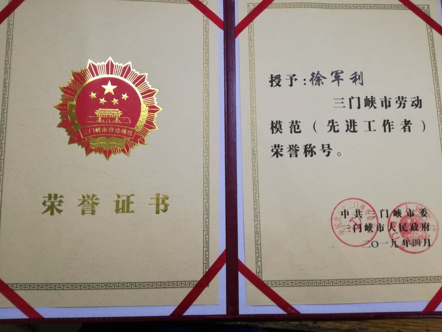 熱烈祝賀昊博公司徐軍利同志獲得“三門峽市勞動(dòng)模范”榮譽(yù)稱號(hào)